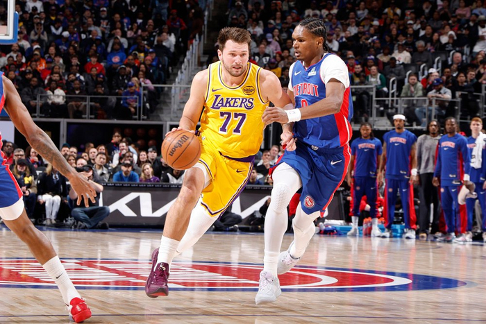 湖人继续六连客之旅,今日做客底特律挑战东部第一的活塞,东契奇开场连得5分,之后空切上篮、外线造犯规三罚全中以及再次轰进三分;面对活塞的攻势,东契奇继续造犯规罚球得分以及强硬突破上篮,第一节打完湖人27-23领先4分,东契奇首节打满12分钟,11投5中、三分7中2、罚球6中5轰下17分2篮板1抢断。