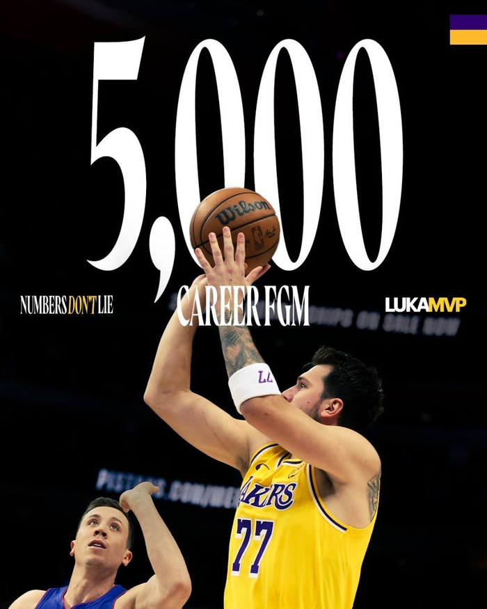 1、东契奇生涯运动战进球突破5000球